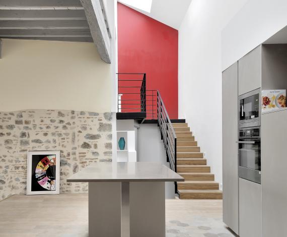 Le défi majeur de cette réalisation était de traiter les problèmes d’humidité et d’infiltration au pied des murs, constitués par de la roche en soubassement, le reste étant en pisé et en pierre.